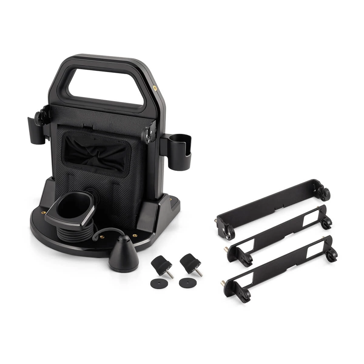 -Navette Premium : tout y est. Interrupteur principal, cĂąbles dâalimentation SAE Ă connexion rapide, grande poignĂ©e, plusieurs options de montage ÂŒâ-20 pour les accessoires, deux supports de tige, la gestion des cĂąbles et des transducteurs et un couvercle de batterie.