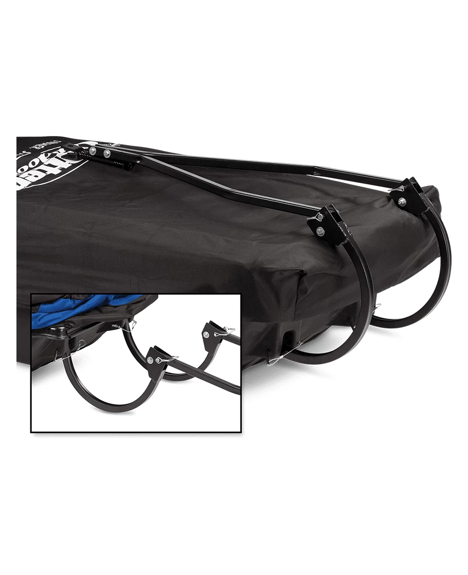 Repliez rapidement votre attelage sur le dessus de votre luge pendant le transport.