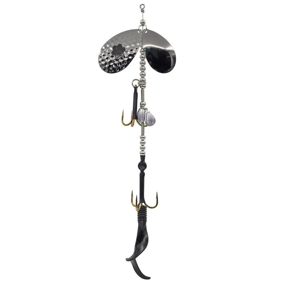 Libérez la lame Savage ! Notre bucktail sur mesure est construit avec des composants de haute qualité et fabriqué à la perfection ! Les lames customisées se plient en vol et tournent immédiatement lors de la récupération afin que vous ne perdiez pas un pouce de votre lancer. Leur design envoie de grandes impulsions et vibrations pour attirer les gros poissons. La configuration intelligente, avec le poids détachable, vous permet de pêcher au-dessus des herbes ou plus profondément au-dessus des structures et des amas de rochers. Nos jupes, nouées à la main, ont le volume parfait pour créer une grande silhouette vibrante tout en s’affaissant parfaitement au moment du ferrage. L’hameçon triple 3X tail en acier au carbone est doté d’un tire-bouchon en acier inoxydable et d’un Trailer tickler grub tail pré-monté, ce qui incite de nombreux poissons à le suivre et à mordre.